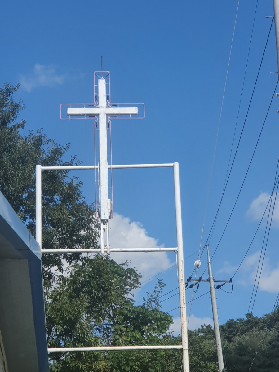 교회 십자가네온 수리사진